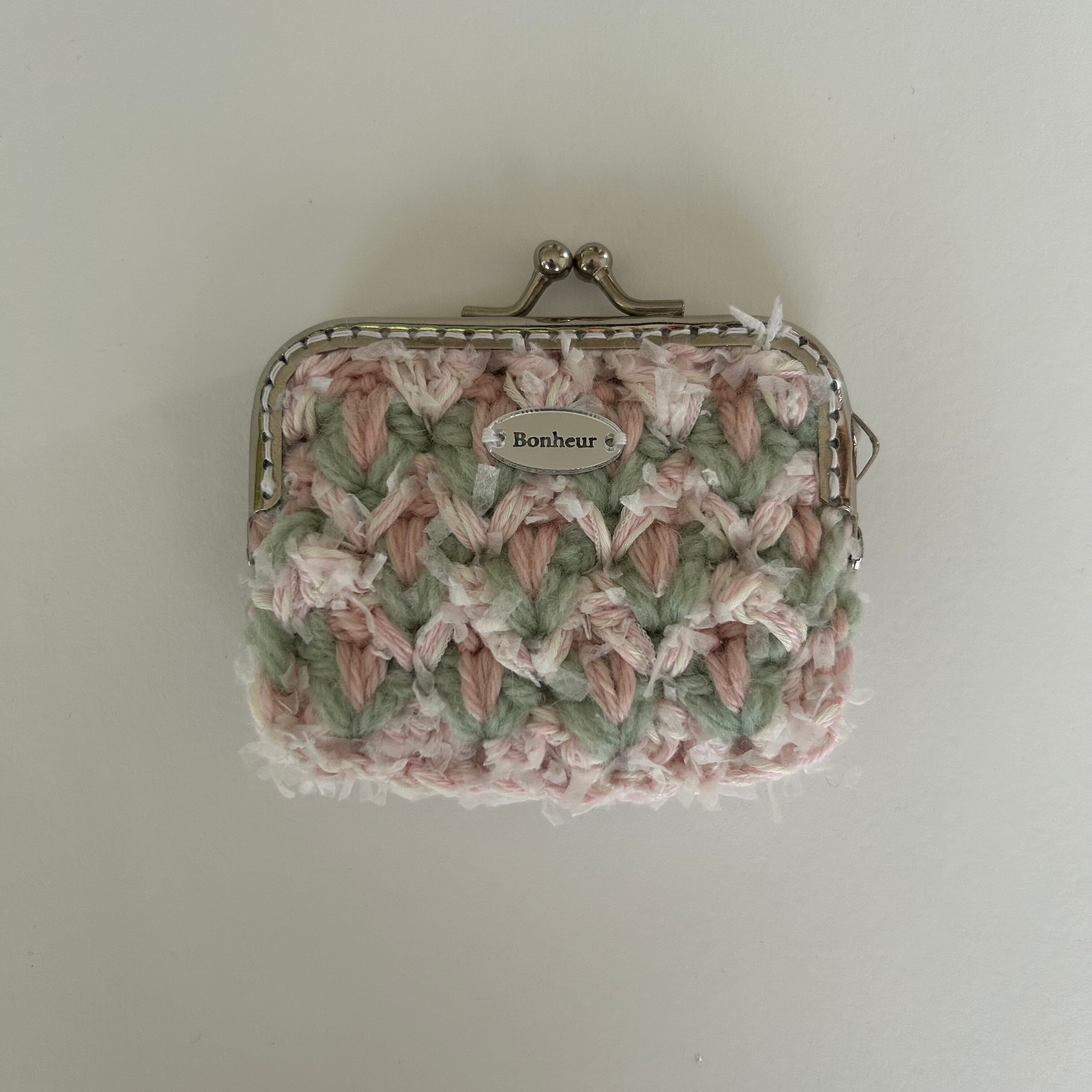 可愛らしい花柄が魅力的な手編みのコインケースです。印鑑やお薬入れにもちょうどいいサイズです。